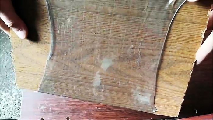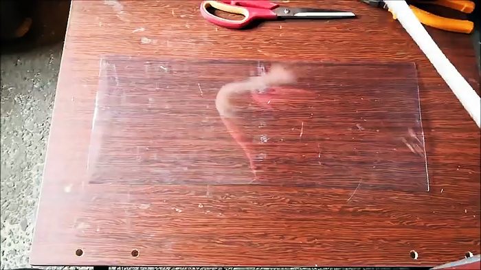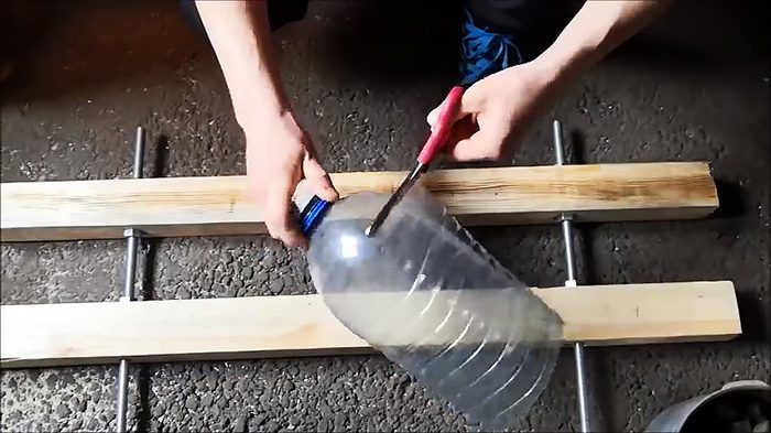 При нагреве она начнет усаживаться, становясь плоской. Из нее уйдет рельеф, пластик станет толще. Затем саморезы выкручиваются, и лист обрезается по краям. Из бутылки 5 л получается лист 170х410 мм. Если использовать кег, то размер листа составит 260х710 мм.