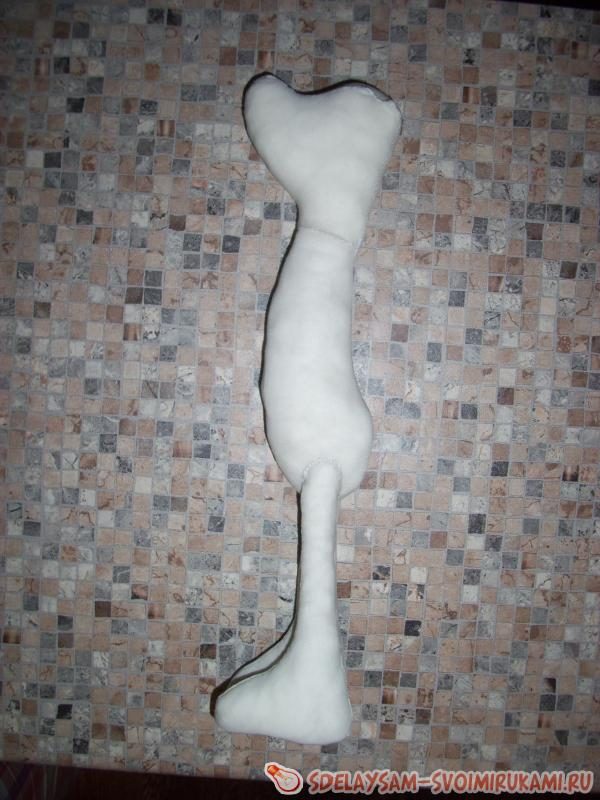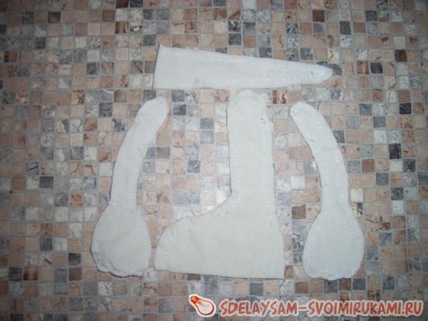 4. Также сшиваем детали лап и хвоста и тоже набиваем хорошо ватой. К лапам можно пришить стопы, но это необязательно, так как не подразумевается, что эта игрушка будет стоять.