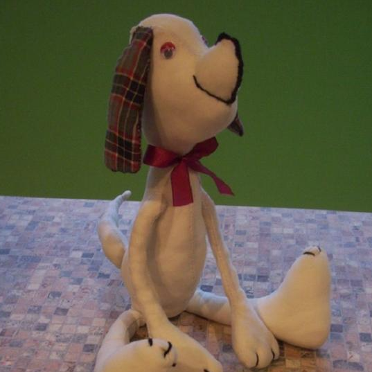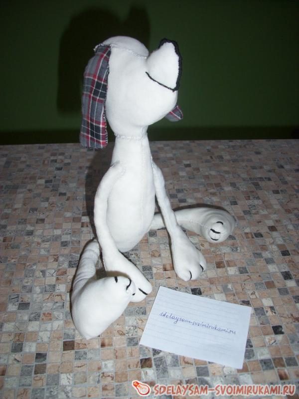 5. Сшиваем между собой детали тела собаки, набиваем ватой и пришиваем к нему голову.