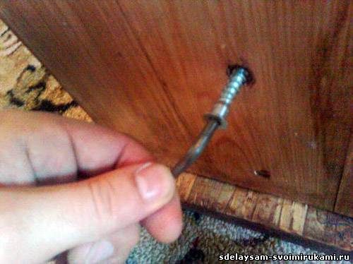 Далее берем перемычку или как ее называют – царгу, ставим ровно посередине крышки. С внешней стороны просверливаем 4 отверстия и закручиваем мебельными шурупами.
