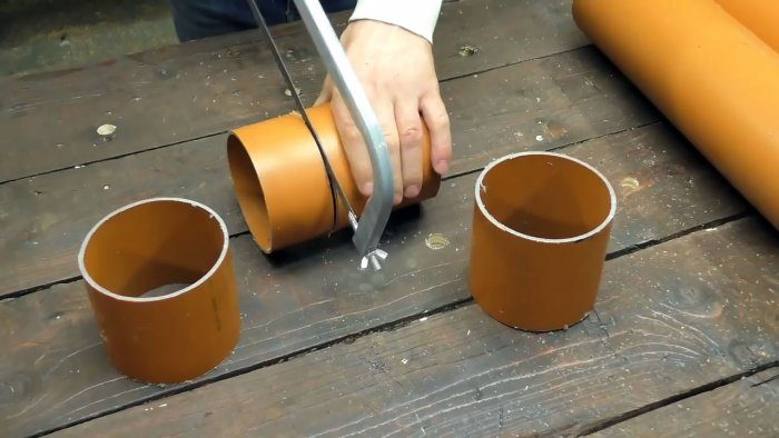 Нарезаем обрезки труб НПВХ по размеру ножовкой или болгаркой.
