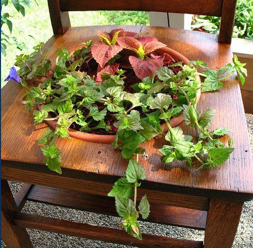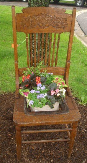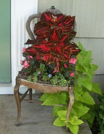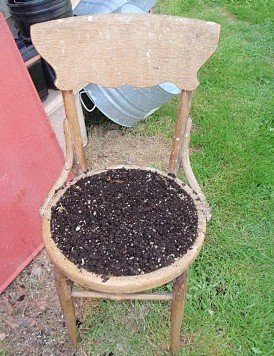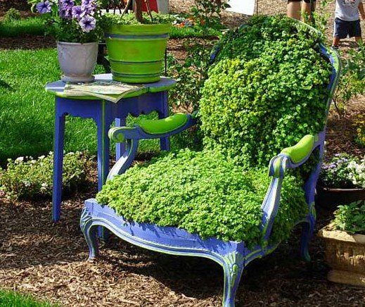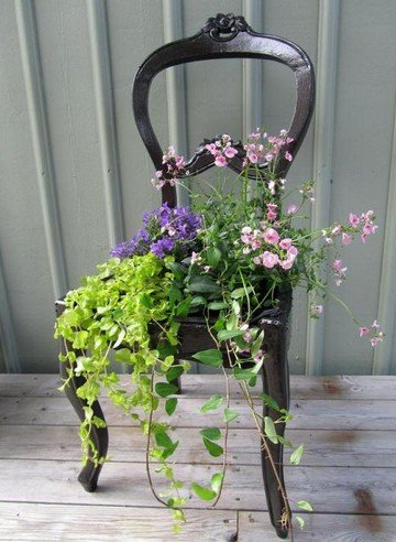 И очень хорошо, когда можно найти идею, как использовать эту мебель с пользой, как в случае с этим старым стулом, который превратился в оригинальный цветочный горшок, или вернее клумбу.