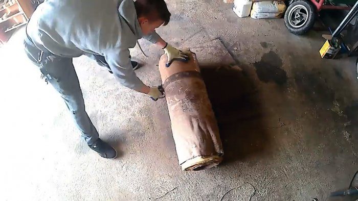 Стараясь не допускать пустот и карманов, как можно плотнее, сворачиваем коврики и закладную деталь в единый цилиндр. После каждого оборота крепим коврики на гвоздь.