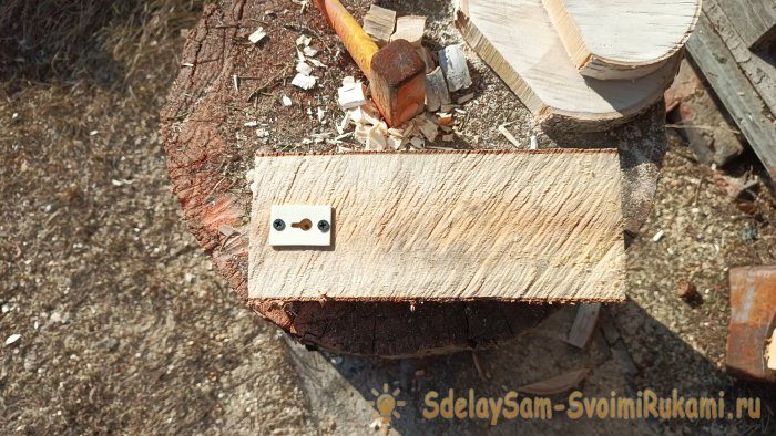 На самих силах, топором срезаем один край, миллиметров 10 от края.