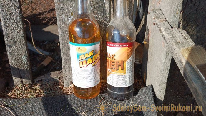 Я пользовался двумя лаками – тёмным и прозрачным. Древесину покрыл тёмным лаком, а берёзовую кору светлым, прозрачным лаком.