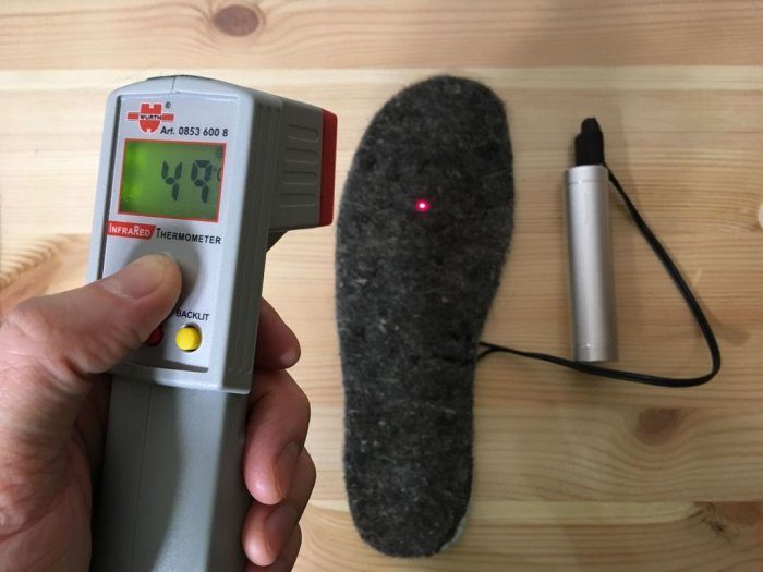 Подключаем к стелькам и проверяем, но предварительно замеряем начальную температуру и она составила 21 градус.