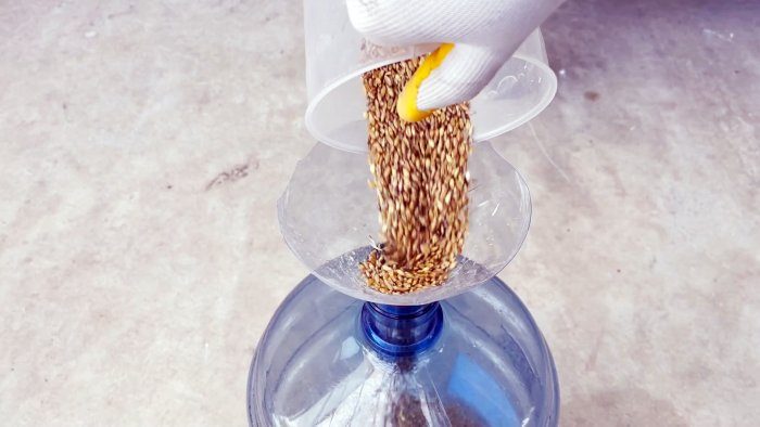 В первую емкость насыпьте зерно, во вторую – налейте воды и закройте их.