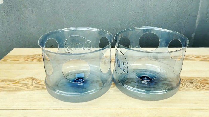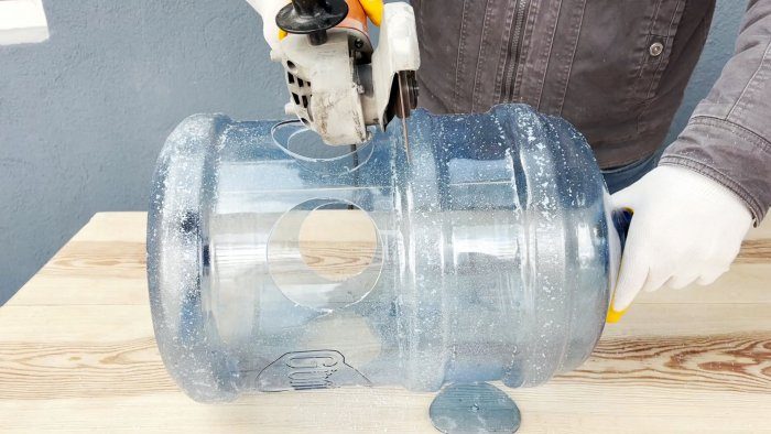 Отрежьте верхнюю часть емкостей при помощи болгарки. Наждачной бумагой удалите зазубрившиеся края.