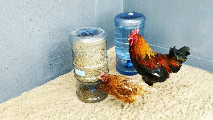 «Долгоиграющая» автоматическая поилки и кормушка для домашней птицы из ПЭТ бутылей