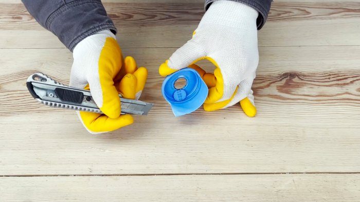 Используя острый канцелярский нож, вырежьте кругляши в 2-х крышках.