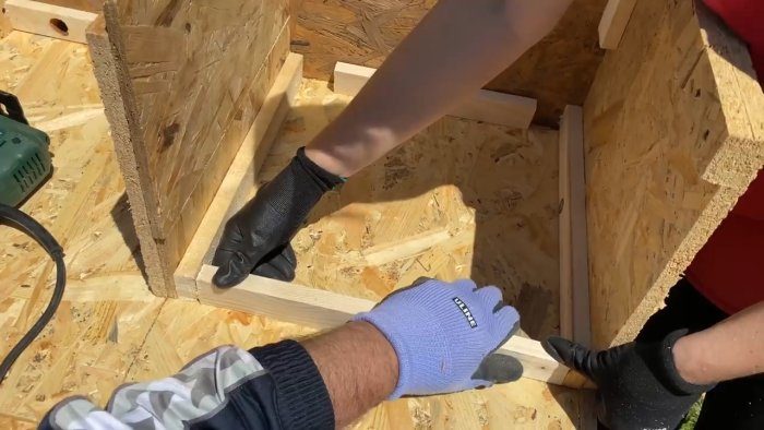 Процесс изготовления функциональных гнезд для кур с яйце-приемниками из OSB поит