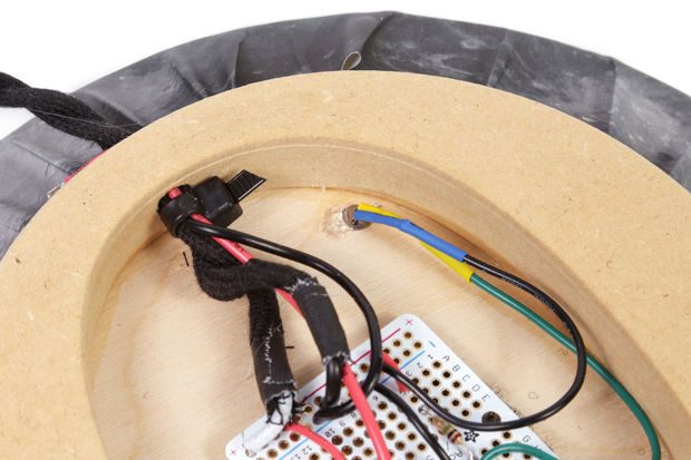 Плату со схемой и прикрепил на одежные липучки, чтобы к любой момент можно было её снять.