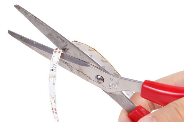 Оставляем на небольшое время, пока все не высохнет. Как только все подсохло по овалу отмеряем светодиодную ленту. Лишнее отрезаем в месте где это указано, иначе не все светодиоды будут гореть.
