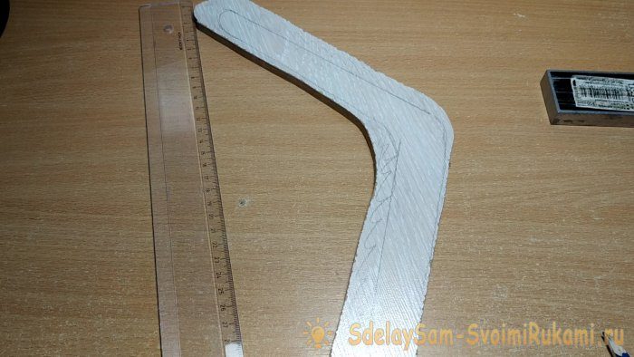 Для формирования внутренней части бумеранга следует отступить 5-6 см от начерченной линии и провести параллели.