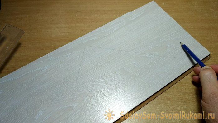 Для тех у кого есть принтер, можно попробовать распечатать этот рисунок и перевести его на доску. Но мне показалось что проще будет начертить эскиз при помощи угольника, чем играться с настройками принтера для того чтоб подогнать размер изображения под размер доски.