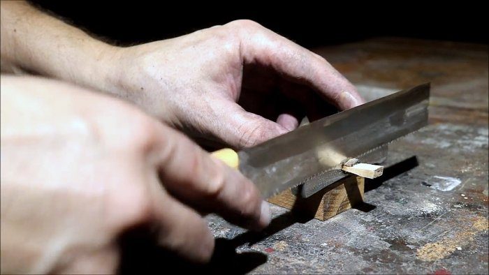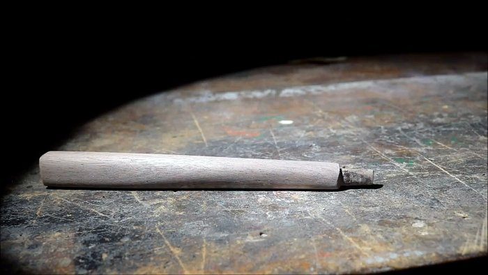 Также создаем посадочное место под молоток. На посадочном месте делаем пропил для установки клина.