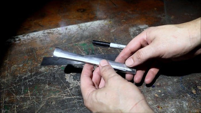 Если мы собираемся из одного костыля сделать два молотка, то нужно заранее измерить их длину, разделив нашу заготовку приблизительно пополам.