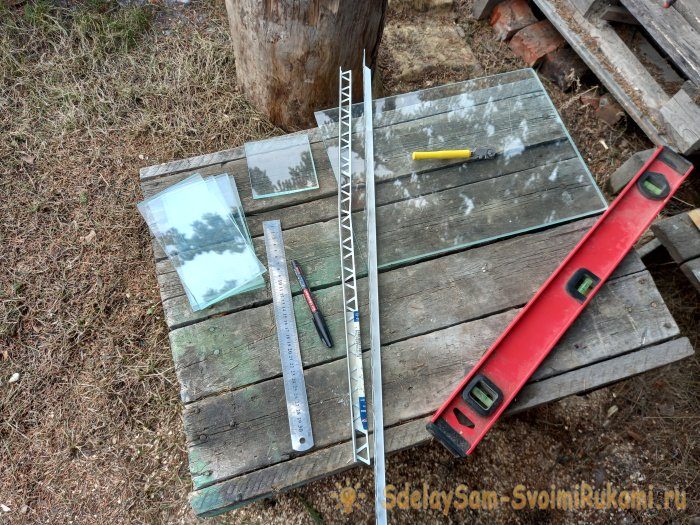 Сначала я пытался нарезать тонкое, полтора миллиметровое стекло для аквариума. Но, со стеклорезом я не дружен.