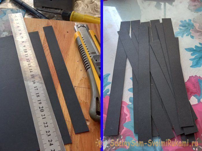 Не стоит беспокоиться, если заляпаются стенки – герметик прекрасно удаляется со стекла уксусом и тонким лезвием. Откладываем аквариум на просушку, еще на пару часов. А пока сохнет аквариум, займемся заготовками для его дальнейшего декора, дабы он имел более пристойный вид. Для оформления углов, я думал использовать декоративные уголки, какие используют при ремонте, но нужных размеров у меня не оказалось. В магазине тоже были довольно широкие. Потому я просто нарезал полоски тонкой пластмассы, нужной ширины, чтобы в дальнейшем элементарно обклеить ими углы.