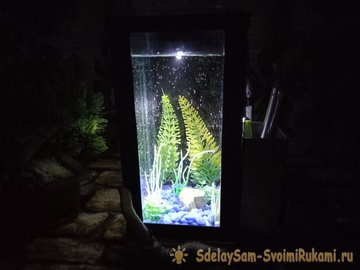 Разумеется, декорировать внутреннее пространство аквариума, каждый может по собственному желанию. После декорирования заливаем внутрь воду.