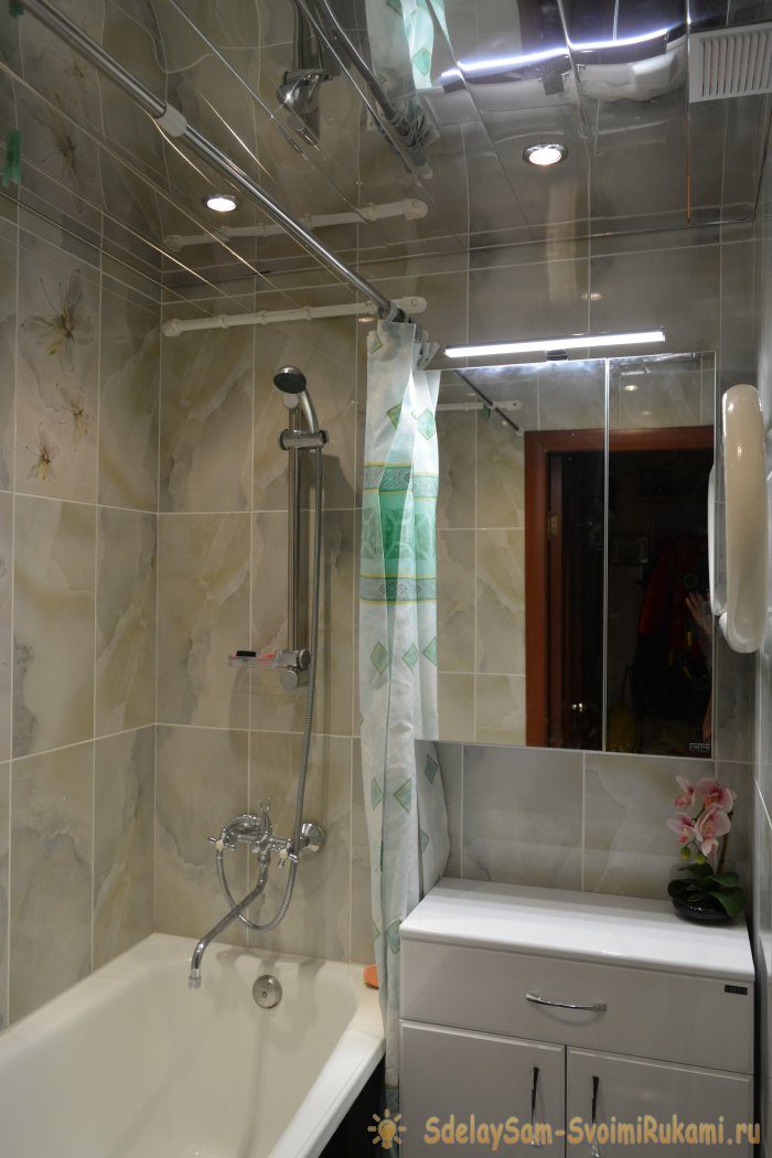 Если эти выгоды являются действительно весомыми, то после ознакомления с мастер-классом вы узнаете: как не имея опыта самостоятельно установить ванну, заменить старые оцинкованные трубы на ПВХ, положить плитку, смонтировать реечный потолок, и во сколько всё это обойдется. В конце статьи мы проведем анализ затрат и высчитаем процент реальной экономии.