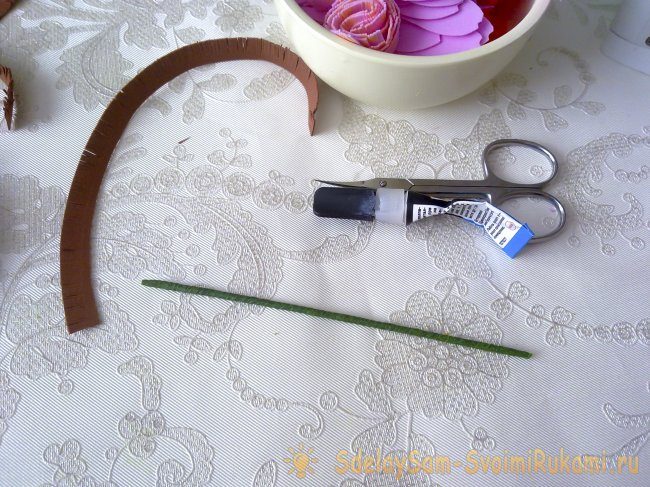Выкраиваем из коричневого фоамирана полоску 1х20 см, превращаем её в бахрому.