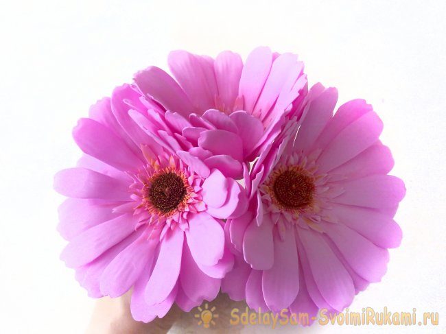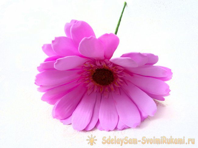 Гербера — такой цветок, который способен активизировать энергию любви, привлечь позитив и удачу в жизнь. А одинокая девушка, если поставит горшок с розовыми герберами у изголовья кровати, сможет найти свою вторую половинку. В этом мастер-классе предлагаем сделать этот волшебный цветок из фоамирана розового цвета.