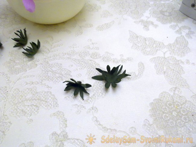 Из зелёного фома выкраиваем три размера чашелистиков.
