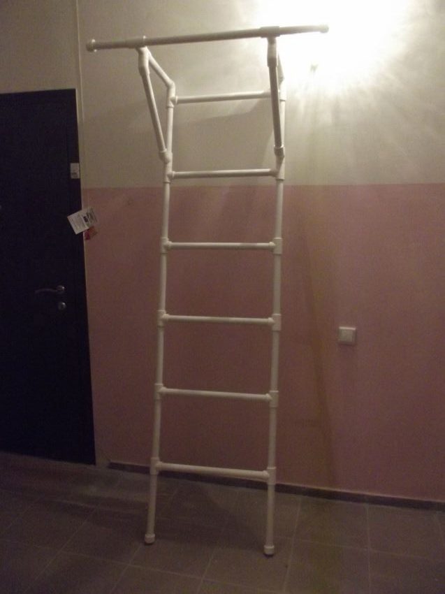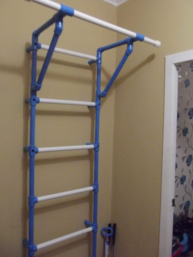 Гимнастическая стенка сделанная своими руками по стоимости получается примерно в 10 раз дешевле чем покупная. Хотя от покупной мало чем отличается. Не нужно быть быть большим специалистом в пайке труб, чтобы собрать её из полипропиленовых труб.