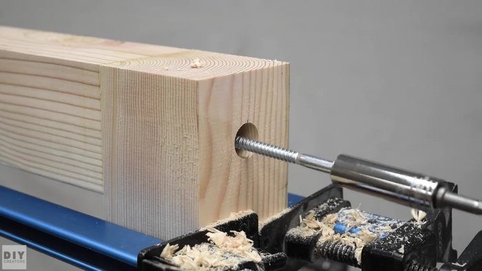 Для механического укрепления соединений в их центрах готовим с помощью электродрели и подходящего сверла глухие отверстия под головки стяжных винтов. Затем сверлом поменьше задаем направление стяжным винтам, которые вворачиваем посредством шуруповерта.