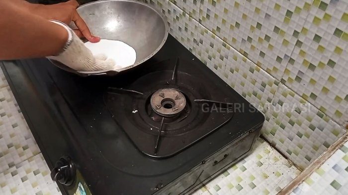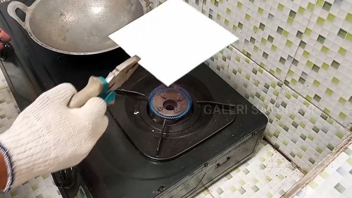 Инструменты: наждачная бумага, лист бумаги в качестве шаблона, болгарка, нож, дремель, лобзиковая пила, газовая плитка и казан с круглым дном, ножницы, термопистолет и пр.