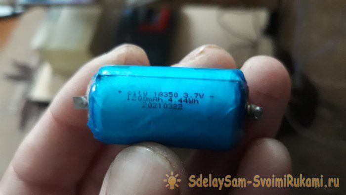 Диаметр отверстия должен исходить из диаметра аккумулятора. Я взял аккумулятор от электронной сигареты диаметром 18 мм, и ёмкостью в 1200 mAh.