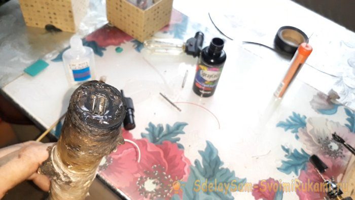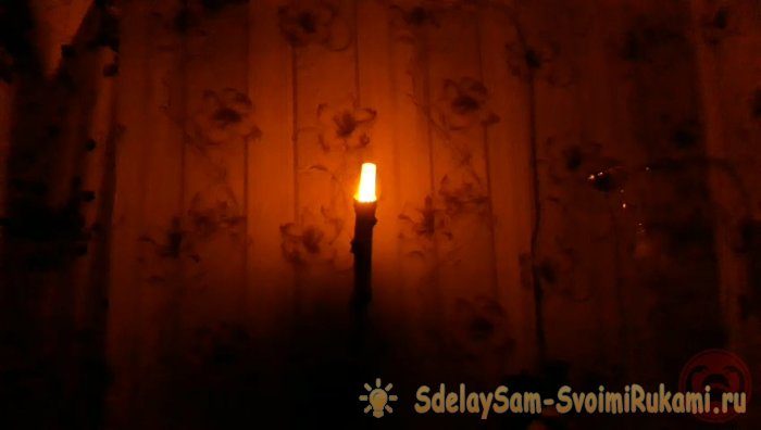 Тут каждый может сделать подставку на свой вкус. Вот такой светильник-факел у нас получился.
