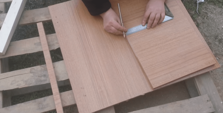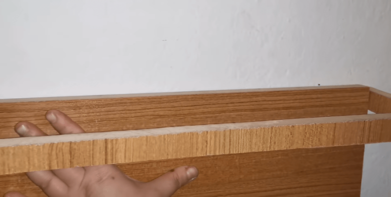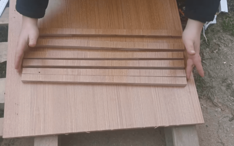 Дополнением станут рейки, из которых впоследствии будут сделаны держатели. Альтернативой ДСП в данном случае могут стать остатки обрезной доски или бруса.