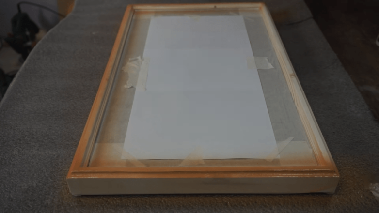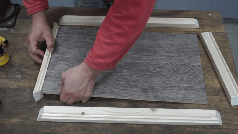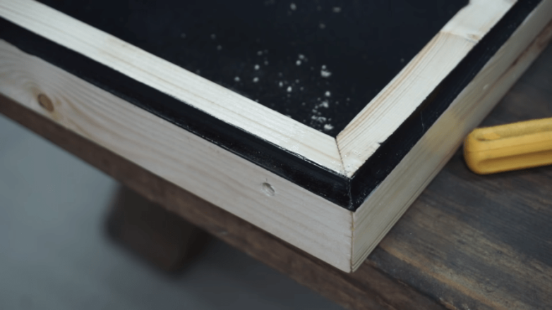 Вставляем ламинат в рамку. Места стыков дополнительно проклеиваем.