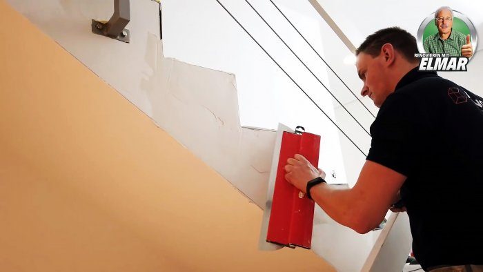 После этого нужно обновить внешний вид косоура, зашпаклевав его, и закрасив, если это нужно. Для этого применяется эластичная шпаклевка.