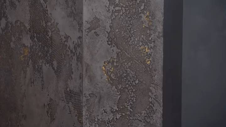 Нанести самодельный воск на стену. Наконец, чтобы добавить больше блёсток, в некоторых местах нанесите поталь и зафиксируйте лаком.