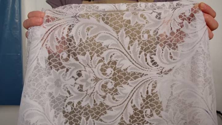 Для работы вам понадобится тюль с красивым узором, который вам нравится. Стена должна быть подготовлена для работы, т. е. загрунтована.