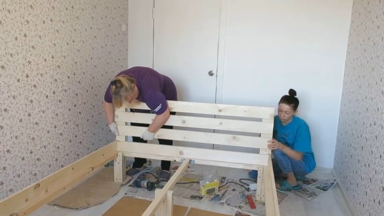 Далее, закрепляются планки по бокам кровати. Изголовье строится из тех же планок. Чтобы оно выглядело интереснее и было прочнее, можно сделать такое необычное изголовье.