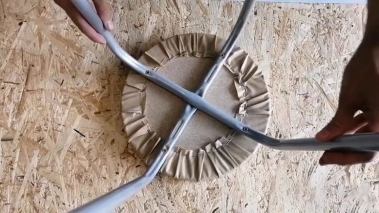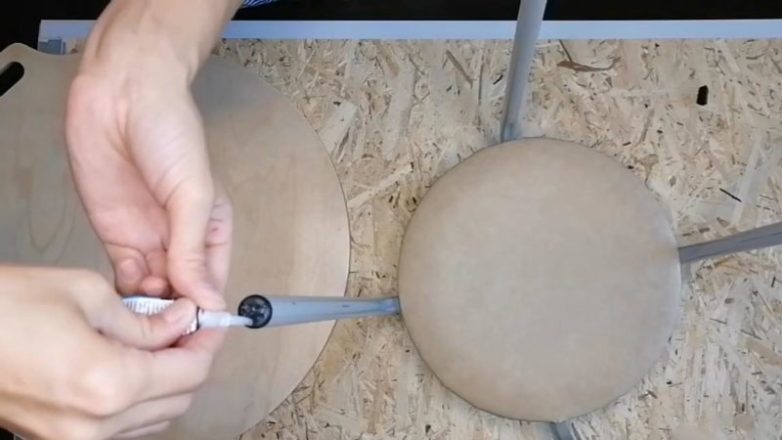 А каркасом столика станет… табурет! Снимите ножки табурета, открутив болты.