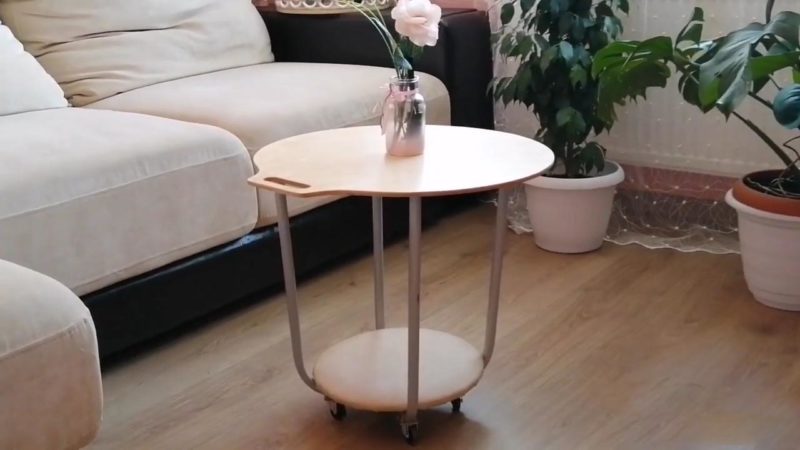 Хотите сделать журнальный столик своими руками, но без особых затрат и заморочек? Тогда идея ниже — то, что вам нужно! Столик получается просто потрясающий, необычный, дизайнерский, на колёсиках, а сделан был из самых непредсказуемых материалов.