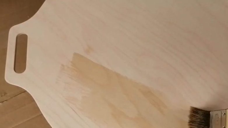Столешницей послужила обычная разделочная доска из фанеры. Для надёжности её нужно зашкурить.