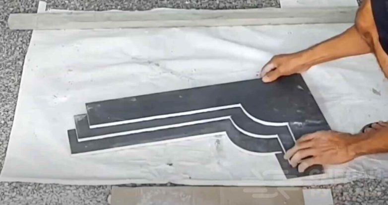 Для изготовления кухонной полки автор использует плитку двух оттенков: темного и светлого. Сами полки изготавливаются из темной плитки, а стенки и перегородки — из светлой.