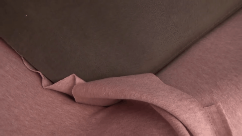 Находящийся сзади шов проходит посредине. Самое время сострочить и вывернуть чехол. Чтобы обеспечить полное прилегание по низу пускаем кулиску с резинкой.