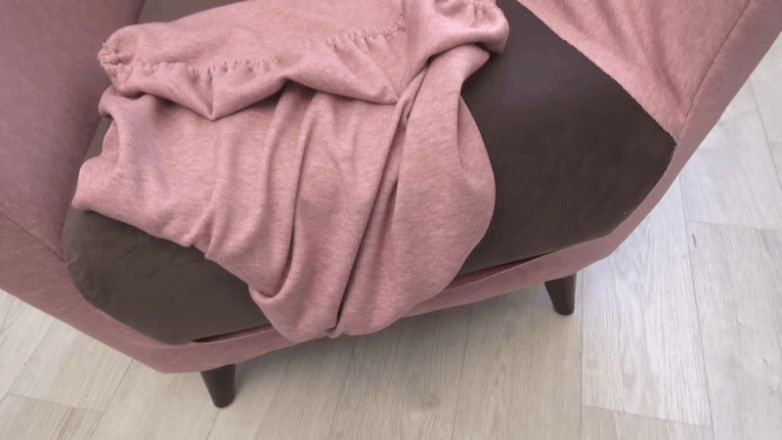 Решение изменить внешний вид эргономичного и удобного во всех отношениях кресла было принято не случайно. Именно этот шаг даст возможность сбалансировать цветовую гамму мебели и обеспечить целостность. Вместо дорогостоящей мебельной ткани, не отличающейся изобилием подходящих расцветок, выбран плотный трикотаж. Суть идеи заключается в том, чтобы полностью повторить контуры кресла с минимальными потерями материала. По сути кресло нужно обвернуть. Чтобы уменьшить расход ткани, принято решение сделать сзади дополнительный шов.