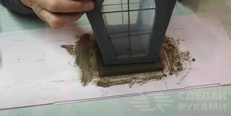 Затем останется только изготовить крышку фонаря, и покрасить все детали в черный цвет.