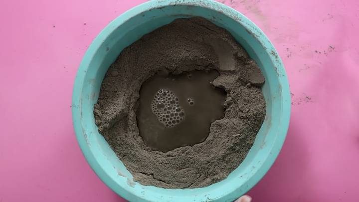 Дааааа, автор просто мастак сделать интригу на ровном месте! А не правильней и понятнее было бы написать так: В маленькую крышку насыпать песок и НАКРЫТЬ ее большой крышкой, а потом перевернуть и залить цементом???????