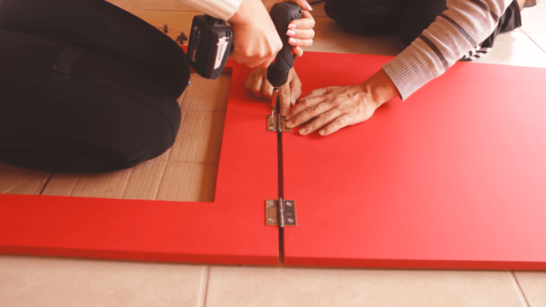 Дальше предстоит покраска деталей с последующей сборкой. Совместив листы между собой, соединяем их при помощи рояльных петель.