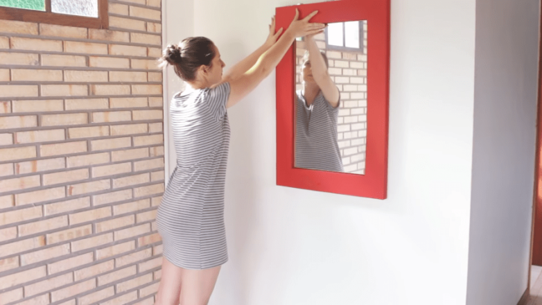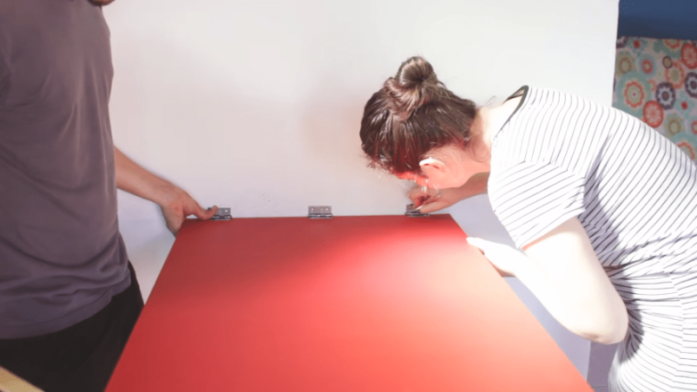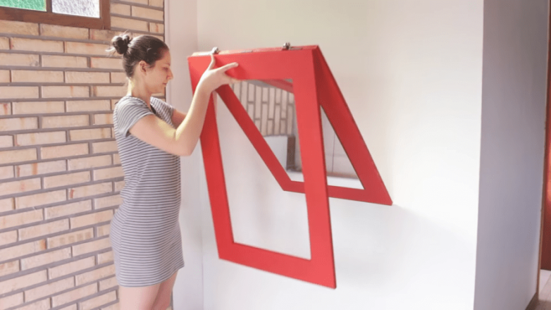 Если вы из-за недостатка свободного места всегда считали обеденный стол роскошью, то эта идея также может оказаться кстати. Все, что понадобится для ее реализации — 2 листа ДВП, рояльные петли, крепеж и подходящее по размеру зеркало.