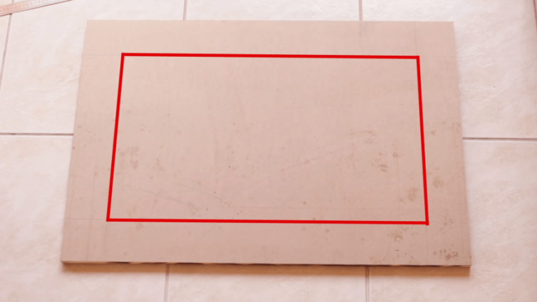 Определиться с габаритами будущего столика предельно просто. Выбрав удобное расстояние от пола легко подобрать высоту. При этом стоит учесть, что длина столешницы будет аналогичной. Ширина конструкции при этом может варьировать. Листы ДВП должны иметь одинаковый размер. Один из них размечаем, делая одинаковые широкие отступы от края со всех сторон.